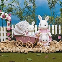 It's time for a stroll through Cloverleaf Corner's Community Park. Connor and Kerri Snow-Warren can't wait to bounce up and down in their carriage as Mother Shannon walks them. This adorable set comes with Mother Shannon Snow-Warren Rabbit, Snow-Warren Rabbit twins Connor and Kerri, carriage, blanket and rattle. Plus, get a special Calico Critters mini-storybook. Mother rabbit measures approximately 3 inches tall.